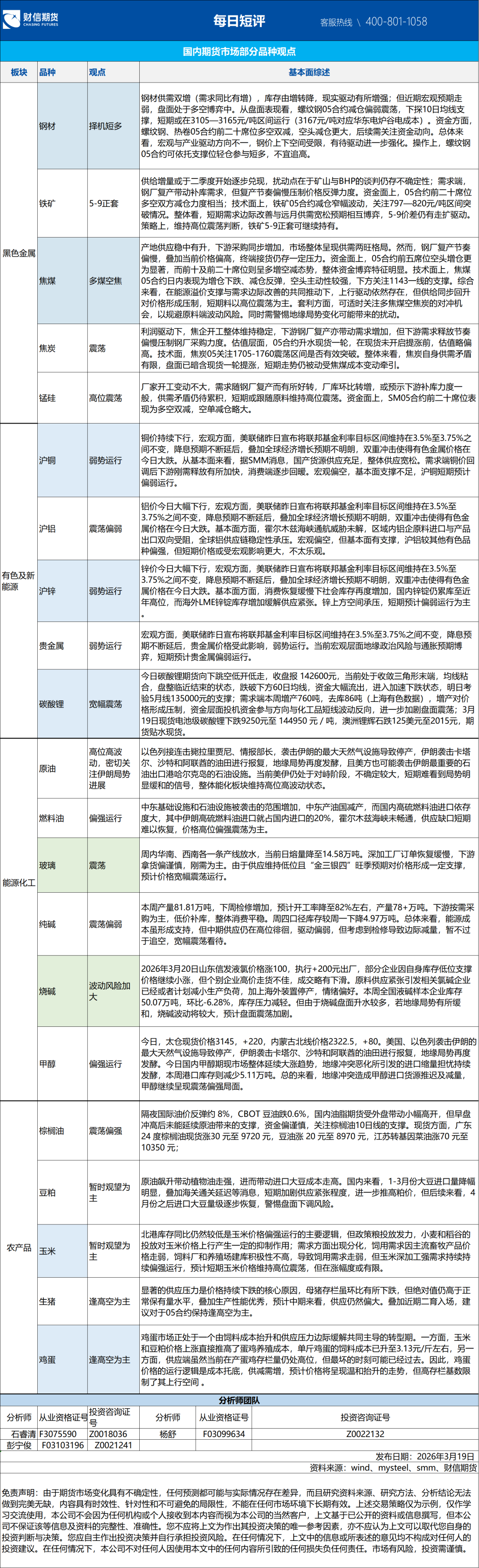 *本报告仅供财信期货有限公司客户及员工使用。本公司不会因接收人收到本报告而视其为本公司当然客户。本报告仅在相关法律许可的情况下发放,并仅为提供信息而发送,概不构成任何广告。本报告信息来源于公开资料,本公司对该信息的准确性、完整性或可靠性不作任何保证。本公司对已发报告无更新义务,若报告中所含信息发生变化,本公司可在不发出通知的情形下做出修改,投资者应当自行关注相应的更新或修改。本报告中所指投资及服务可能不适合个别客户,不构成客户私人咨询建议。任何情况下,本报告中的信息或所表述的意见均不构成对任何人的投资建议。在任何情况下,本公司及本公司员工或者关联机构不承诺投资者一定获利,不对任何人因使用本报告中的任何内容所引致的任何损失负任何责任。投资者务必注意,其据此作出的任何投资决策与本公司及本公司员工或者关联机构无关。市场有风险,投资需谨慎。投资者不应将本报告作为投资决策的唯一参考因素,亦不应认为本报告可以取代自己的判断。在决定投资前,如有需要,投资者务必向专业人士咨询并谨慎决策。本报告版权仅为本公司所有,未经书面许可,任何机构和个人(包括本公司客户及员工)不得以任何形式复制、发表、引用或传播。本报告由财信期货研发服务中心对许可范围内人员统一发送,任何人不得在公众媒体或其它渠道对外公开发布。任何机构和个人(包括本公司内部客户及员工)对外散发本报告的,则该机构和个人独自为此发送行为负责,本公司保留对该机构和个人追究相应法律责任的权利。
